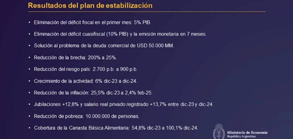 “Se la pasaban diciendo a la gente que no se podía cerrar el déficit fiscal pero derribamos ese mito, en segundo lugar que no era socialmente aceptable porque iba a ver una revuelta social y un tercer mito donde logramos bajar la inflación tanto minorista como mayorista haciendo crecer la economía en un 6% de diciembre del 2023 a diciembre del 2024”.