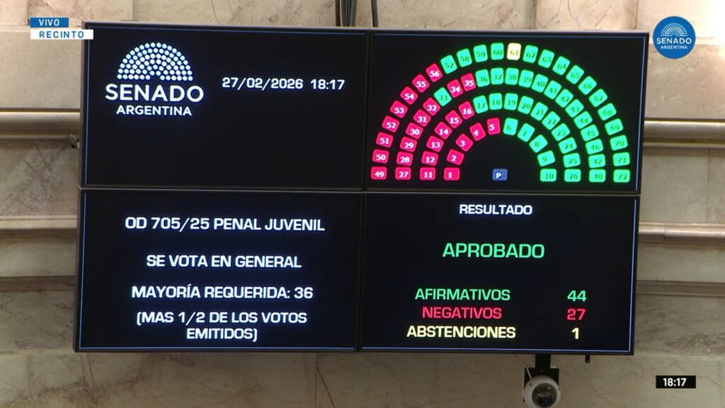 El Senado votó positivamente por el Régimen Penal Juvenil y el proyecto impulsado por La Libertad Avanza se convertirá en ley cuando la promulgue el Poder Ejecutivo.
