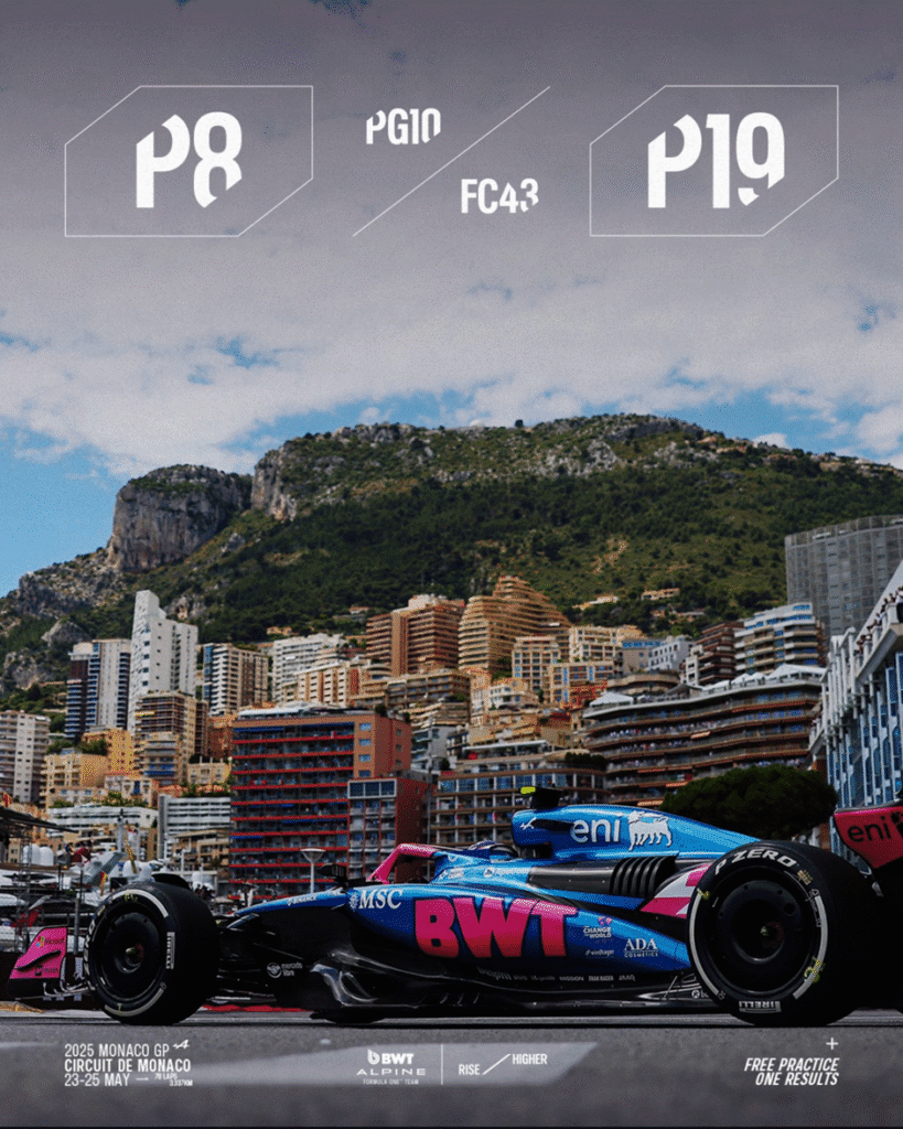 Franco Colapinto completó esta mañana su primera práctica libre del Gran Premio de Mónaco de Fórmula 1, marcando su segunda participación oficial con el equipo Alpine. En una sesión marcada por la exigencia del circuito urbano de Monte-carlo, el piloto argentino finalizó en la 19 posición, con un tiempo de 1:15:574, a mas de tres segundos del líder de la tanda, Charles Leclerc.