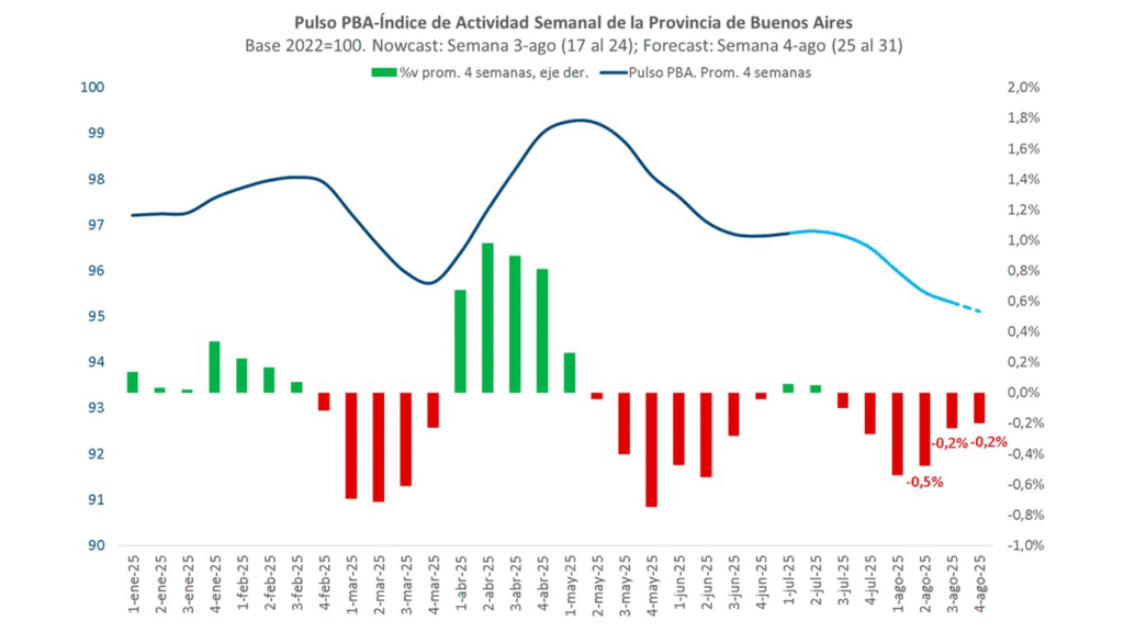 Según el Pulso PBA, la economía ya había retrocedido un 0,3% en julio y el panorama no muestra señales de mejora en el corto plazo. A esto se suman las complicaciones derivadas de las inundaciones en sectores productivos de la provincia.