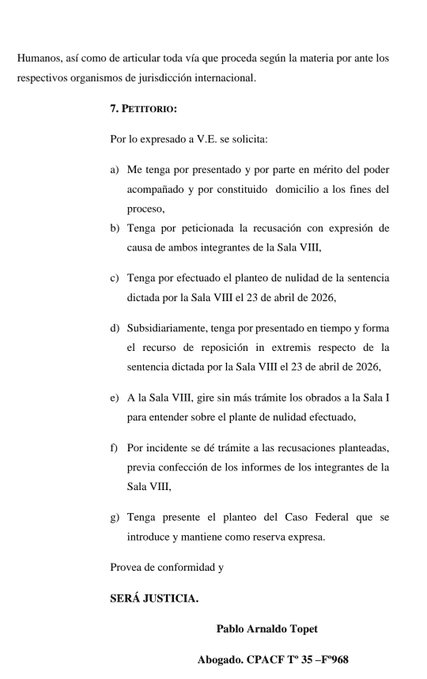 El planteo apunta directamente contra la resolución del 23 de abril que otorgó efecto suspensivo a la apelación del Estado Nacional, lo que dejó sin efecto la medida cautelar que había frenado varios artículos clave de la reforma.