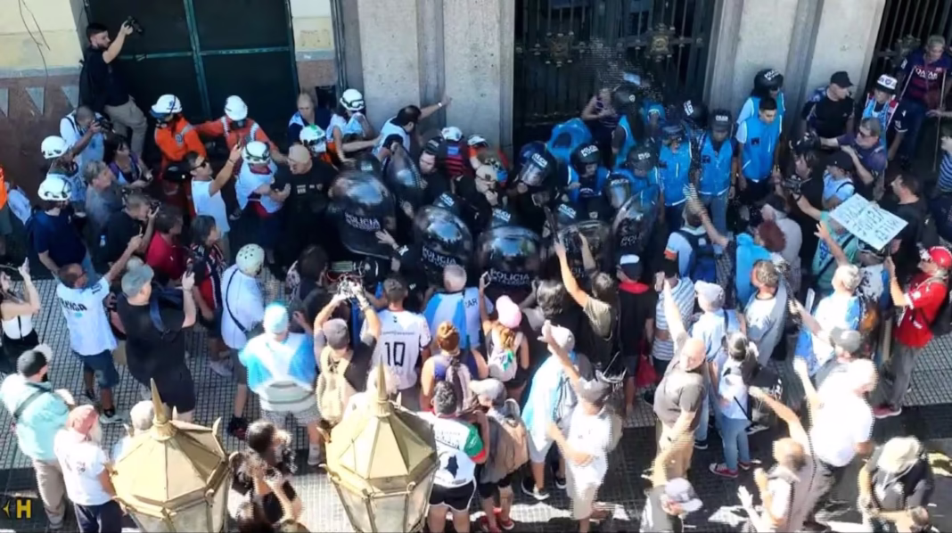 Durante los disturbios, algunos manifestantes arrojaron botellas contra los agentes y otros intentaron ingresar al edificio de la Auditoría General de la Nación. Ante esta situación, la Policía ingresó al lugar y utilizó gases lacrimógenos para dispersar la protesta.