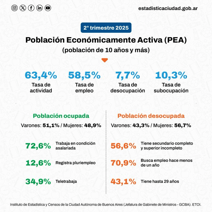 Los resultados del IDECBA confirman que, aunque el empleo porteño mantiene su estabilidad, persisten desafíos estructurales: alta informalidad, brechas de género, subocupación y dificultades para la inserción laboral de los trabajadores menos calificados.